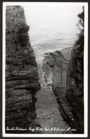 | Ash Besters Tasmania A.B.Series No 145 real photo postcard entitled "Devil's Kitchen. Eag Neck. Unused