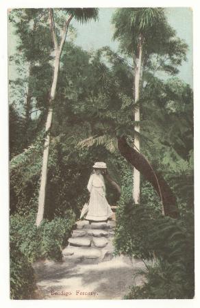 | Vintage postcard captioned "Bendigo Fernery" showing a lady standing under the tree ferns. Used for letter dated 10/2/08. Note: crease lower right corner, and some minor faults.