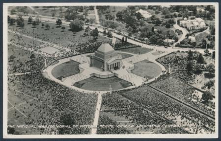 | Melbourne The Shrine of Remembrance (National War Memorial of Victoria. Aerial view of Dedication Ceremony. No. 3. |