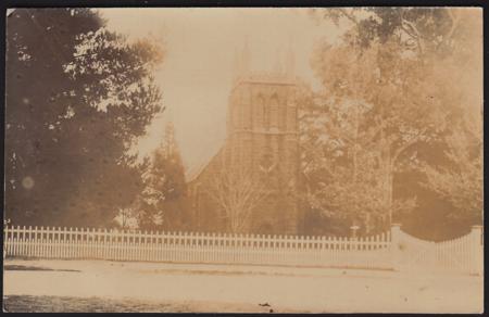 Real photo postcard featuring an old bluestone church. Identified on back as Daylesford but this is possibly not correct.