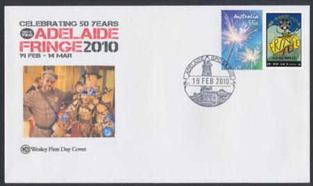 19-Feb-2010 Australia Fringe Festival PStamp First Day Covers set of 9 with cachet of festival activities, PStamp depicts 55c Sparklers and festival images tied Adelaide pictorial postmark