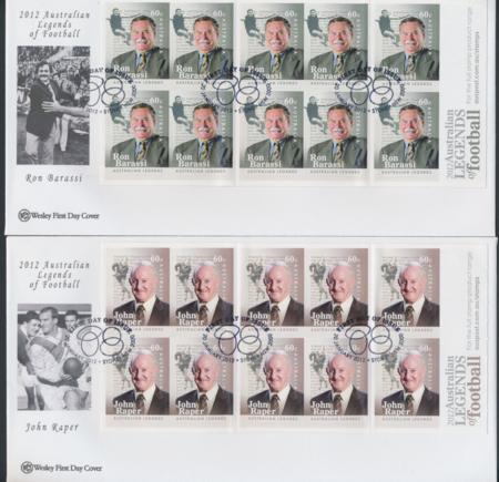 | 20-Jan-2012 Australian Legends of Football Booklet Panes (8) Wesley First Day Cover |