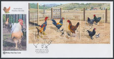 | 03-Sep-2013 Australian Poultry Breeds Miniature Sheet Wesley First Day Cover |