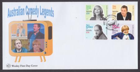 | 16-April-2020 Australia Comedy Legends 4 P&S Stamps Wesley First Day Cover