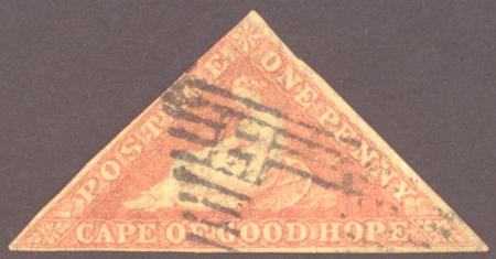 | Cape of Good Hope 1863 1d Brownish-Red Imperf, 2.5 margins, SG 18c