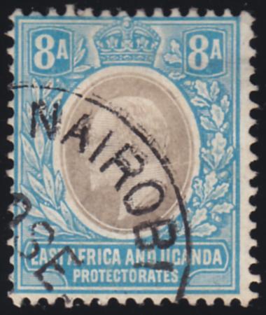 | 1904 East African Protectorate 8a Brown & Blue KEVII, chalk paper, SG 25a, used