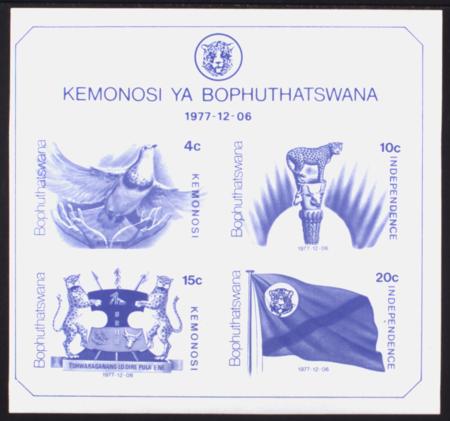 | 1977 Independence imperf mini sheet of 4 in Blue, Sc 1-4, MUH |