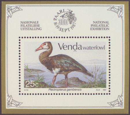 | 1987 25c Spur-Winged Goose, Philadelic Foundation min sheet of 1, SG 153(v), MUH