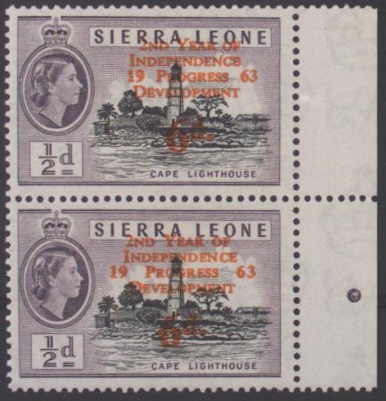 | 1963 3d Surcharge 2nd year of Independence, right marginal vertical pair, SG 257, MUH. Variety |
