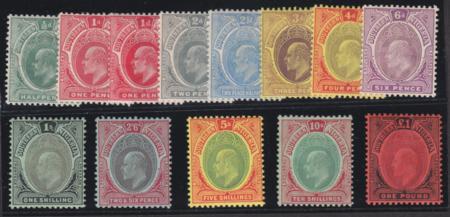 | 1907-11 ½d - $1 King Edward VII (13) incl 1d Die 2, SG 33-44 + 34ab, MH |