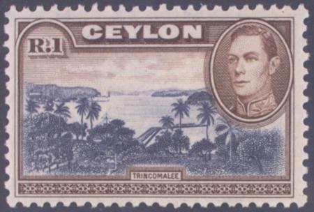 | 1944 Ceylon 1R Blue-Violet & Chocolate, upright watermark, SG 395a, MUH