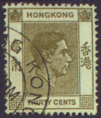| 1945 Hong Kong 30c Yellowish-Olive, P.14.5x14, SG 151a used |