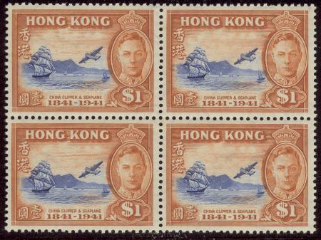 | 1941 Hong Kong Centenary $1 Blue and Orange block of 4, SG 168 MUH