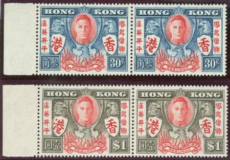 | 1946 Hong Kong Victory Set With Extra Stroke in horizontal pairs, SG 169a & 170a MUH |