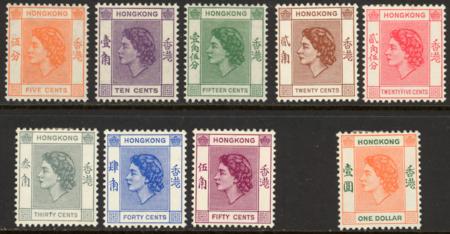 | 1954 Hong Kong QEII Definitives (9), SG 178-187 ex 186, MH