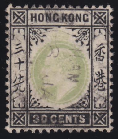 | 1906 Hong Kong 30c Dull Green & Black, chalk surface paper, SG 84a, used