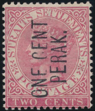 | 1886 Malaya Perak 1c on 2c overprinted Pale Rose QV, SG 26 MH |
