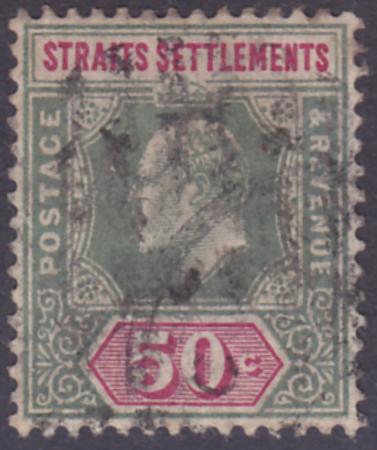 | 1902 Straits Settlements 50c Deep Green & Carmine, SG 118, used |