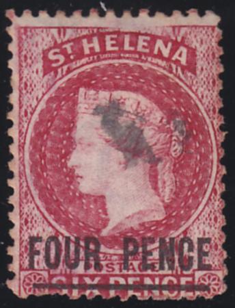 | 1864 4d surcharge on 6d Carmine Queen Victoria, SG 13, used