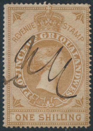 | 1879 1/- brown Revenue Province of Griqauland West, perf 14, no wmk, Barefoot 64 |