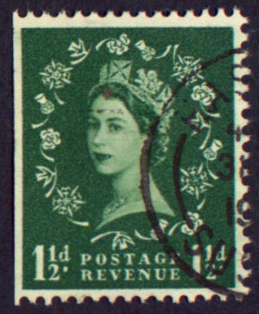 | 1958 1½d QEII, green, wmk sideways, imperf at left, SG 572L |