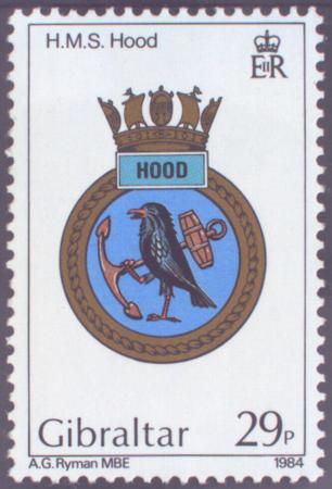 | Gibraltar 1984 29p HMS Hood, Naval Crests, 3rd Series, Wmk Inverted, SG 513w