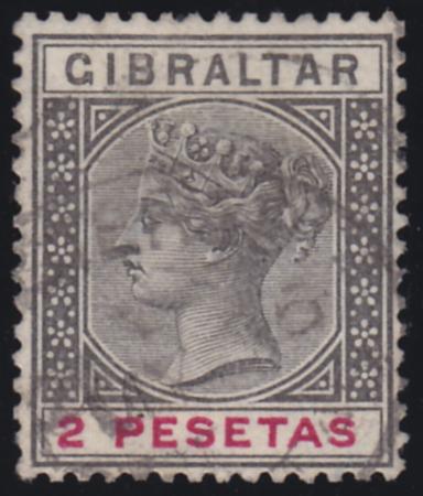 | 1896 Gibraltar 2p Black & Carmine Queen Victoria, SG 32, used