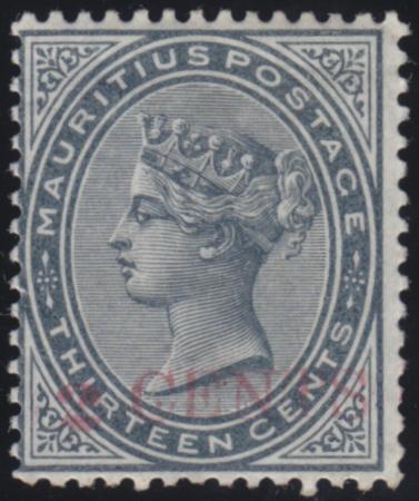 | 1887 2c Surcharge (in red) on 13c Slate Queen Victoria, SG 117, Mint hinged