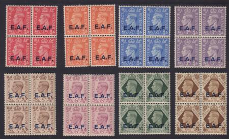 | 1943 British Occupied Somalia Overprints, 1d-1s in blocks of 4, SG S1-8, MH |
