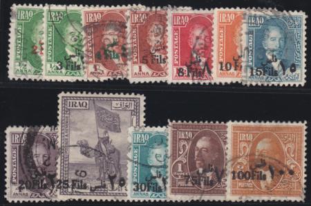 | 1933 Iraq Surcharges 2f - 100f excl 40f (12), SG 106-18 excl 116, used |
