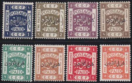 | 1920 1M - 5p overprinted Palestine stamps (8), perf 14, SG 9-16, MH |