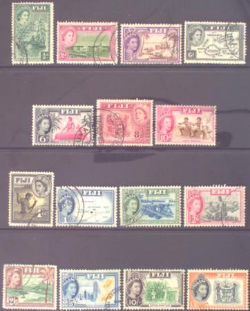 | Fiji 1954-9 QEII Definitives, Set of 15, Lightly hinged, SG 280-295
