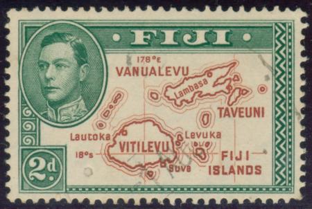 | 1938 Fiji 2d Brown and Green, Die I, SG 253a, used, extra line variety |