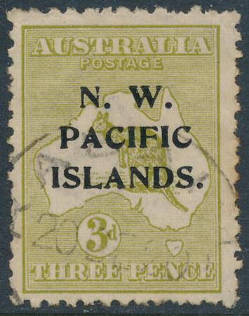 | 1919 NWPI 3d Greenish Yellow Kngaroo SG 109, Part RABAUL NEW BRITAIN Cancel |