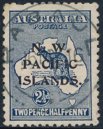 | 1915 NWPI 2½d Indigo Kangaroo KGV SG74 type C. Part RABAUL, NEW BRITAIN Cancel. |