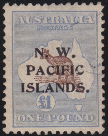| 1916 NWPI £1 Brown & Blue Kangaroo KGV SG 99 type C used