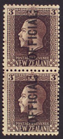 | 1915-25 KGV, 3d Chocolate Official, vertical pair, SG O100c, Mint |