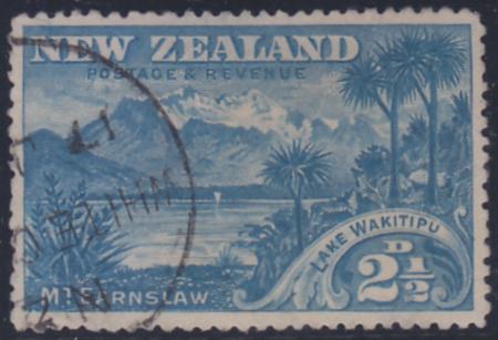 | 1898 2½d Sky Blue, ' WAKITIPU', perf 15, CP V7ov, used, variety: 2 coloured lines in base of ½, R11/9 |