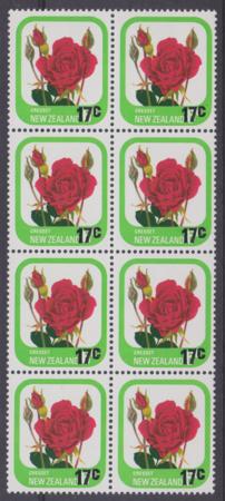 | 17c surcharged Cresset Rose, block of 8, CP PAV32a, MUH, small black dot above and right of 'c', Pl 2A 1,2 and 3/5 |