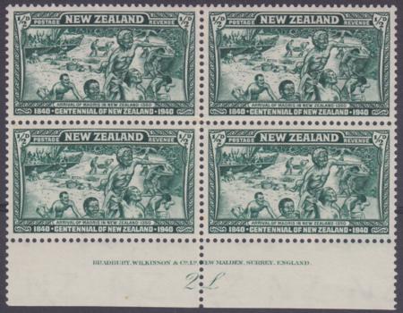 | 1940 ½d Green Centennial, lower marginal imprint block of 4, Plate 2L, CP S26a (4), MUH |