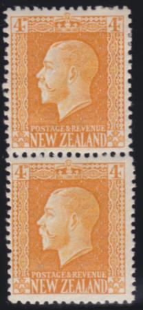 | 1915 4d Yellow vertical pair perf 14x13.5 & 14x14.5. SG 421d |