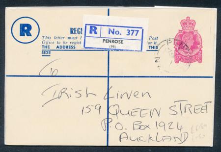 | QEII Registered Postal Stationery. 22c. Samuel EF. 18a. PENROSE Used.