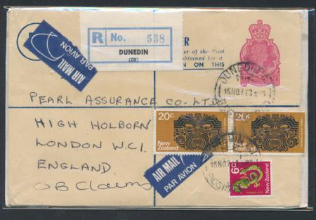 | QEII Registered Postal Stationery. 22c. Samuel EF. 18a. DUNEDIN Used.