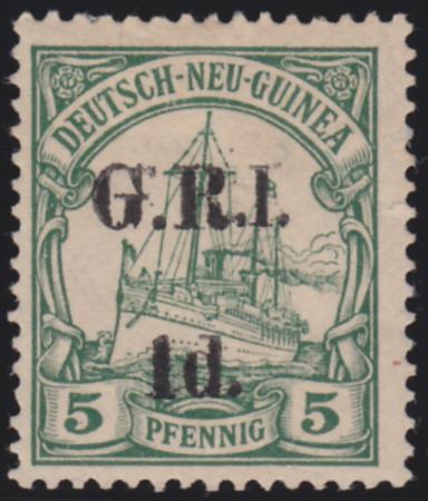 | 1914 New Guinea 1d GRI overprint on 5pf with 1 for I variety, SG 2a MH |