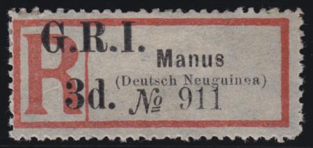 | 1915 New Guinea Registration Label surcharged GRI 3d for MANUS, SG 39 MH |