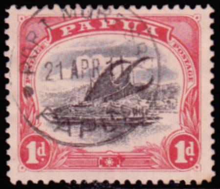 | 1910 Papua 1d Black and Carmine, SG 60, Rift in Cloud flaw. used. |