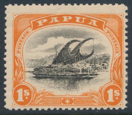 | 1910 Papua 1/- Black and Orange. Small Papua. Wmk Sideways. Perf 12½, SG 71. MH |