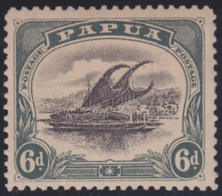 | 1908 Papua 6d Black & Myrtle Green, wmk upright, perf 11, SG 53, MH |