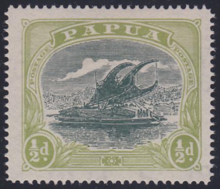 | 1916 Papua ½d Myrtle-Green & Apple-Green, SG 93, MH Thick levaes at right |