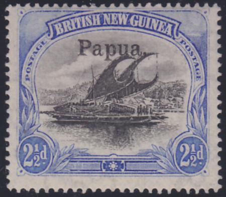 | 1906 Papua 2½d Black & Ultramarine, Large 'Papua' overprint, wmk vertical, SG 24, MH